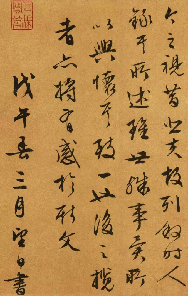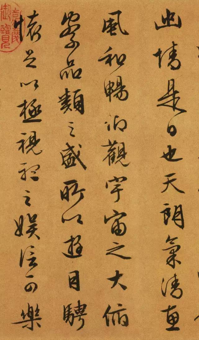 这幅书法是文征明在八十九岁的时候所临摹的《兰亭序》。八十九岁的高龄却能沉稳地写出如此飘逸的书法,没有几十年的书法功底是难以达到的。其次,文征明临摹《兰亭序》别具一格,他与虞世南、褚遂良等书法家临摹《兰亭序》不同,文征明在临摹的时候并不兼顾形似,而是意临。