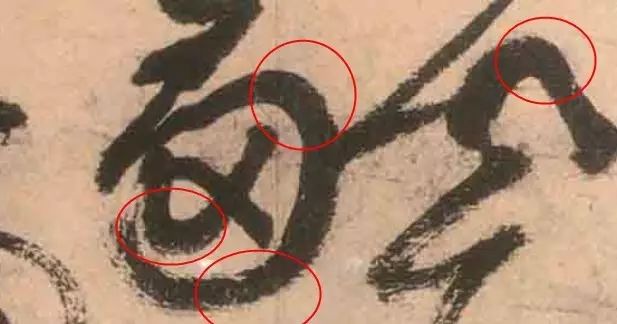 可以看出,在书写圆线条为了能保证裹锋用笔的状态(笔锋是尖状),需要运用好绞转的技术,我们找一组古人写圆弧的图片看看是否饱满。