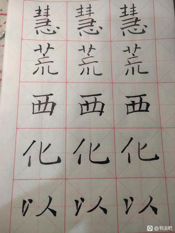 现在的问题是,感觉卡住了,有点没信心不知道怎么继续,虽然已经很努力对着帖看了,但还是手跟不上眼,又怕一直重复错误的习惯改不了。初学不宜习此贴,如果觉得楷书太难,不妨试试隶书,张迁礼器等均可