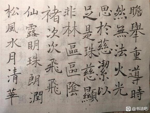 写了三个多月,依然会手抖,最开始临欧体,写了一个月基本的笔画也写不好,就挫败地放下了,然后想起以前一个学书法的朋友是专注褚体,我就也试了下,有种打破规矩的舒展,就换成了褚。