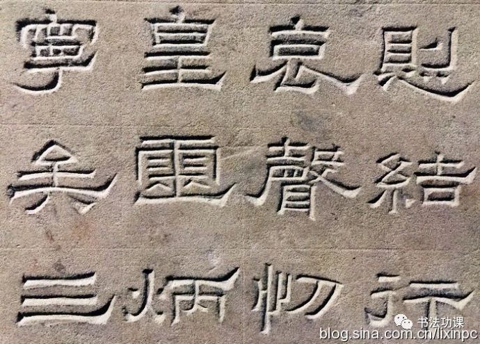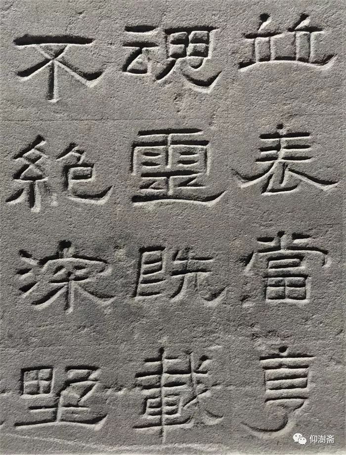 纵观景云碑全篇,文字结体较为方整严谨,与多数东汉隶书字形的圆润舒展有别。部分文字的横、撇、捺、钩等笔画收尾处锋芒毕露,体现出接近魏晋隶书的特点。如“魂”、“追”等字,主横画意气沉雄,强调笔力,收尾处却以燕尾蓄势高挑,颇为夸张。