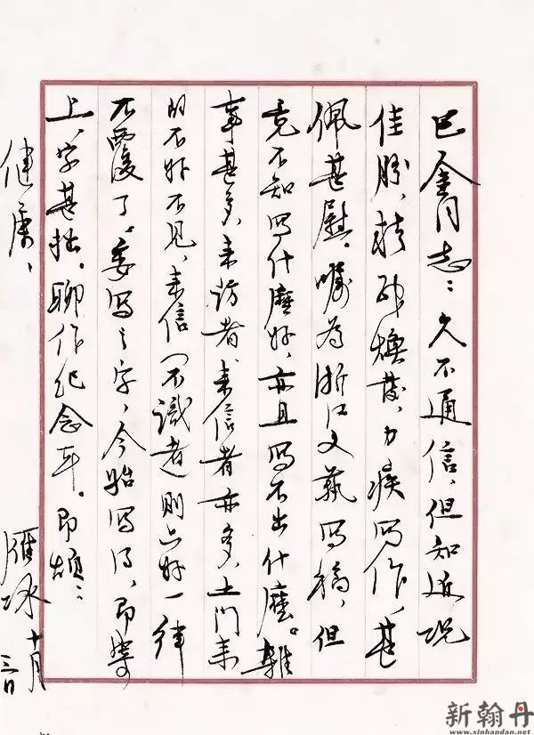 改革开发放后,茅盾与许多老友开始书信往来,朋友中也有不少人向茅盾求取“墨宝”,茅盾总是有求必应,一面谦虚,自称“字殊拙劣”,一面开始讲究书法形式,于是,求字的人愈来愈多。