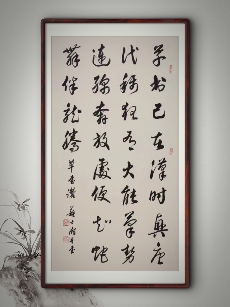 在这些展览中,他用诗词吟咏,用书法载体展示考证书学疑点,书写内容引经据典,其中读书励志、文房四宝、金石题跋、情系草原等主题作品,无不涉猎,既展示了书法艺术,又彰显了“字外功夫”。