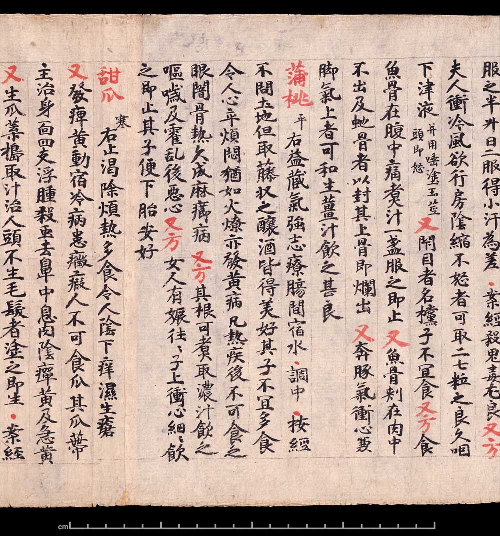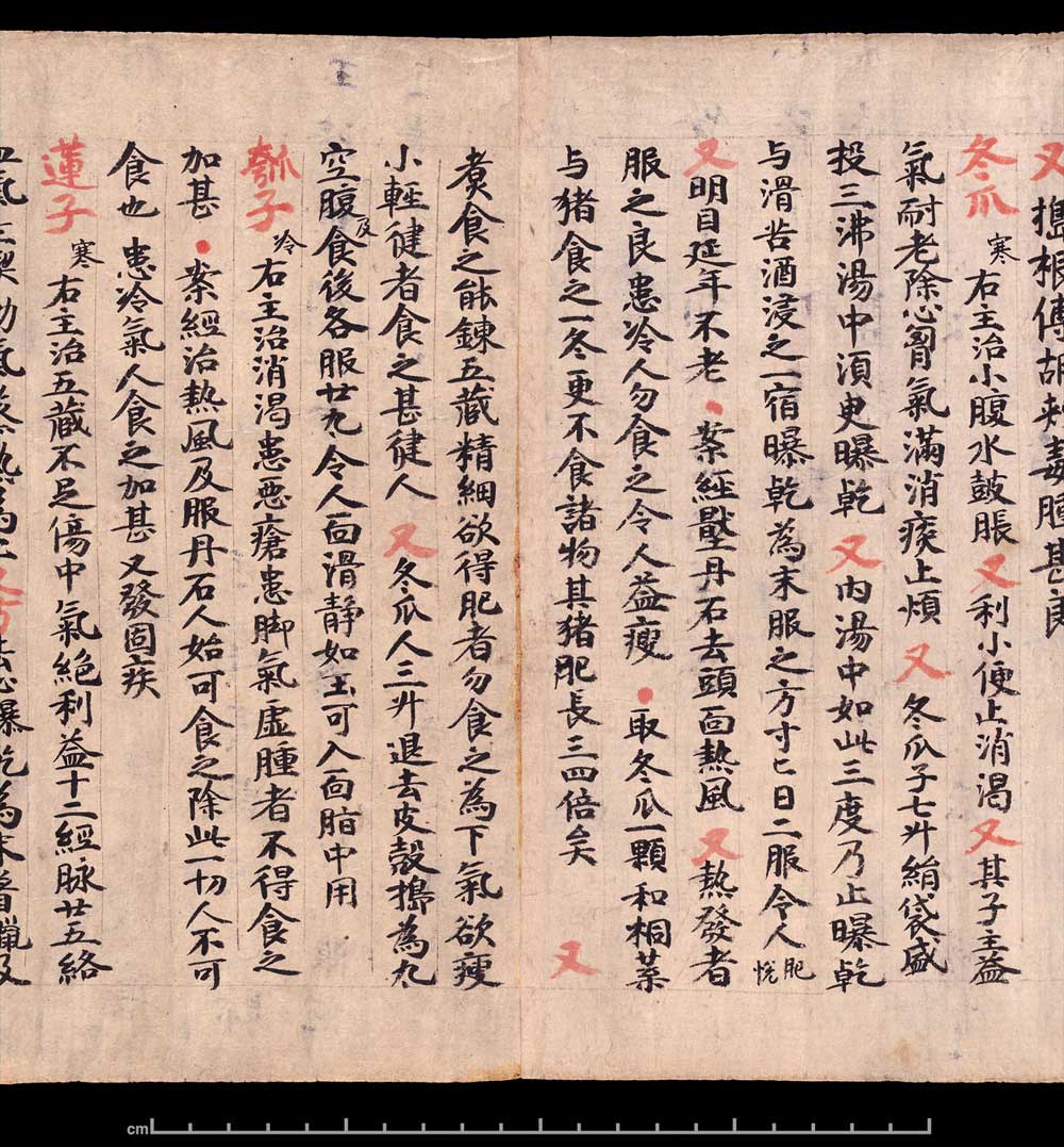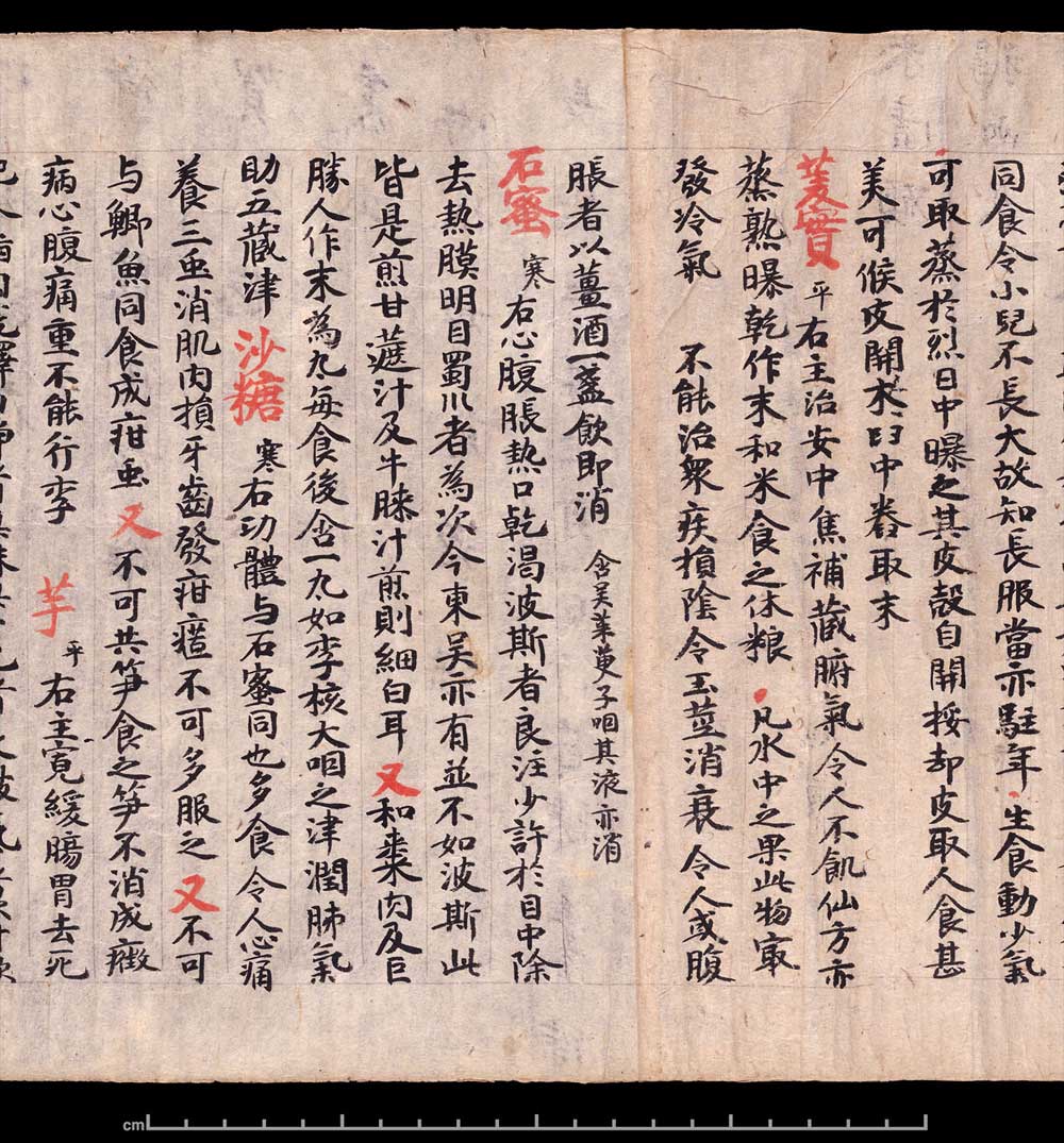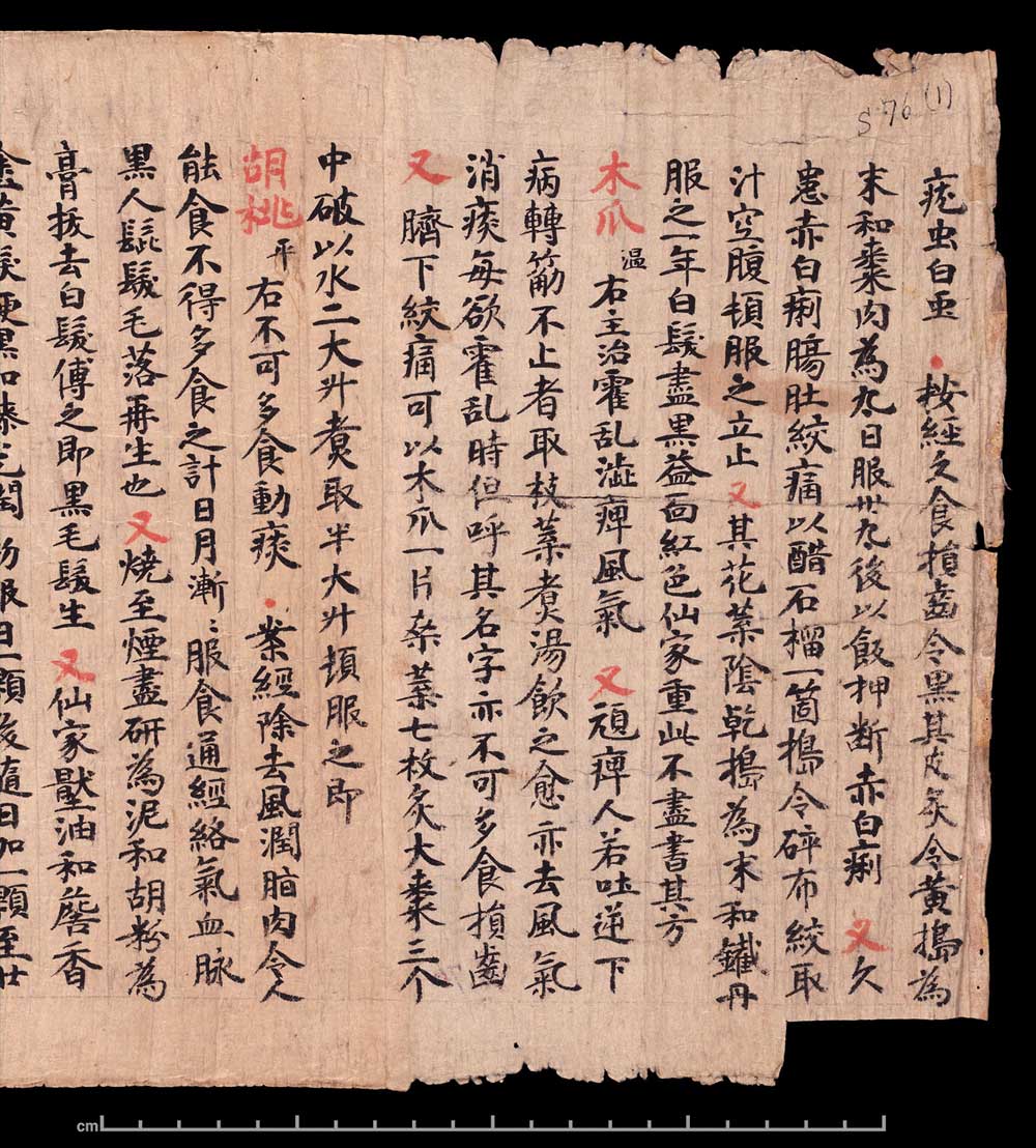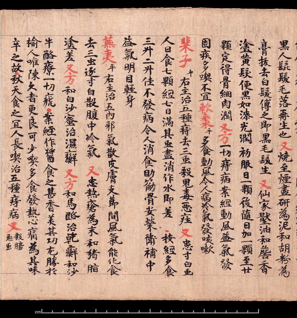 敦煌《食疗本草》残卷 纸本,卷轴。26.6x240cm,公元400-934。英国大英博物馆藏。