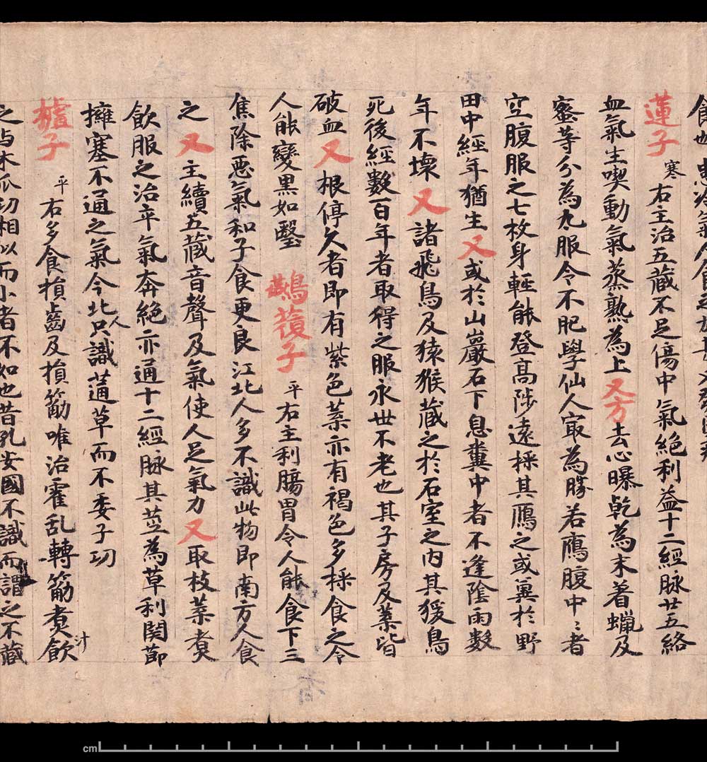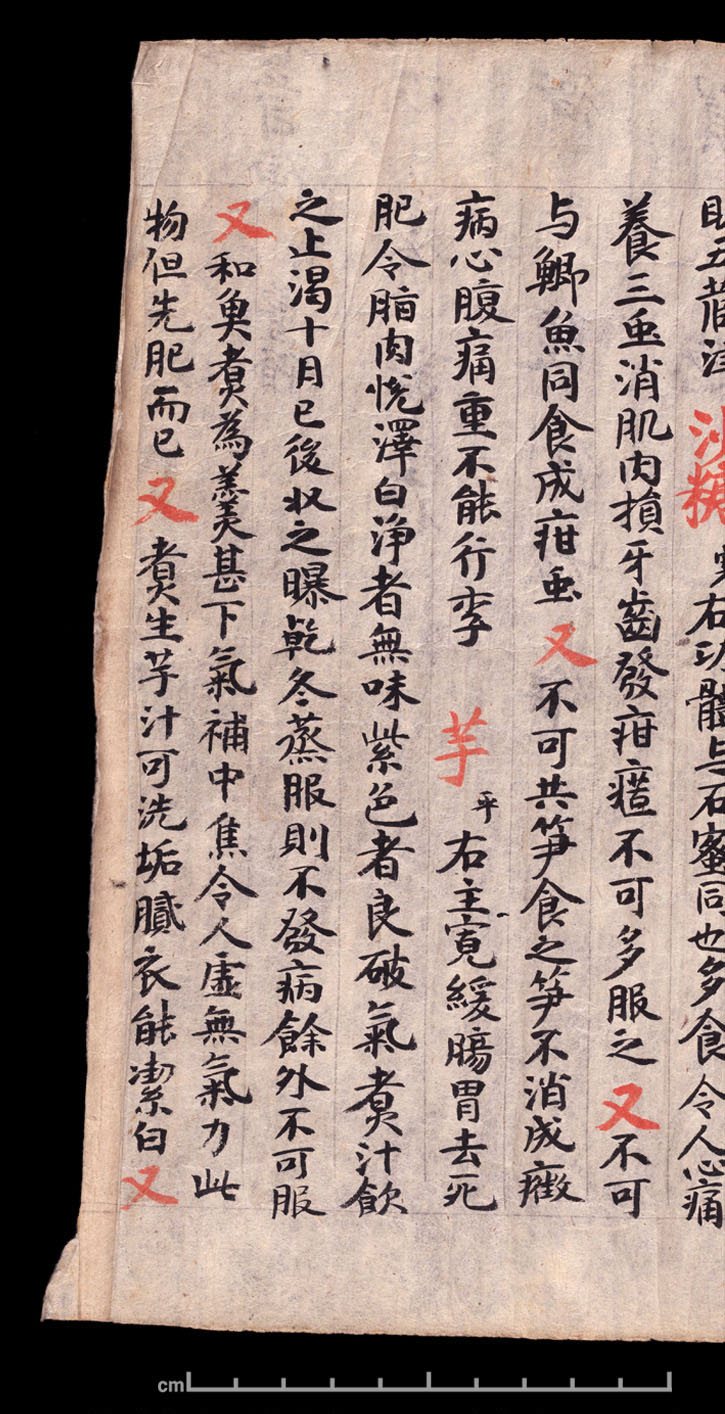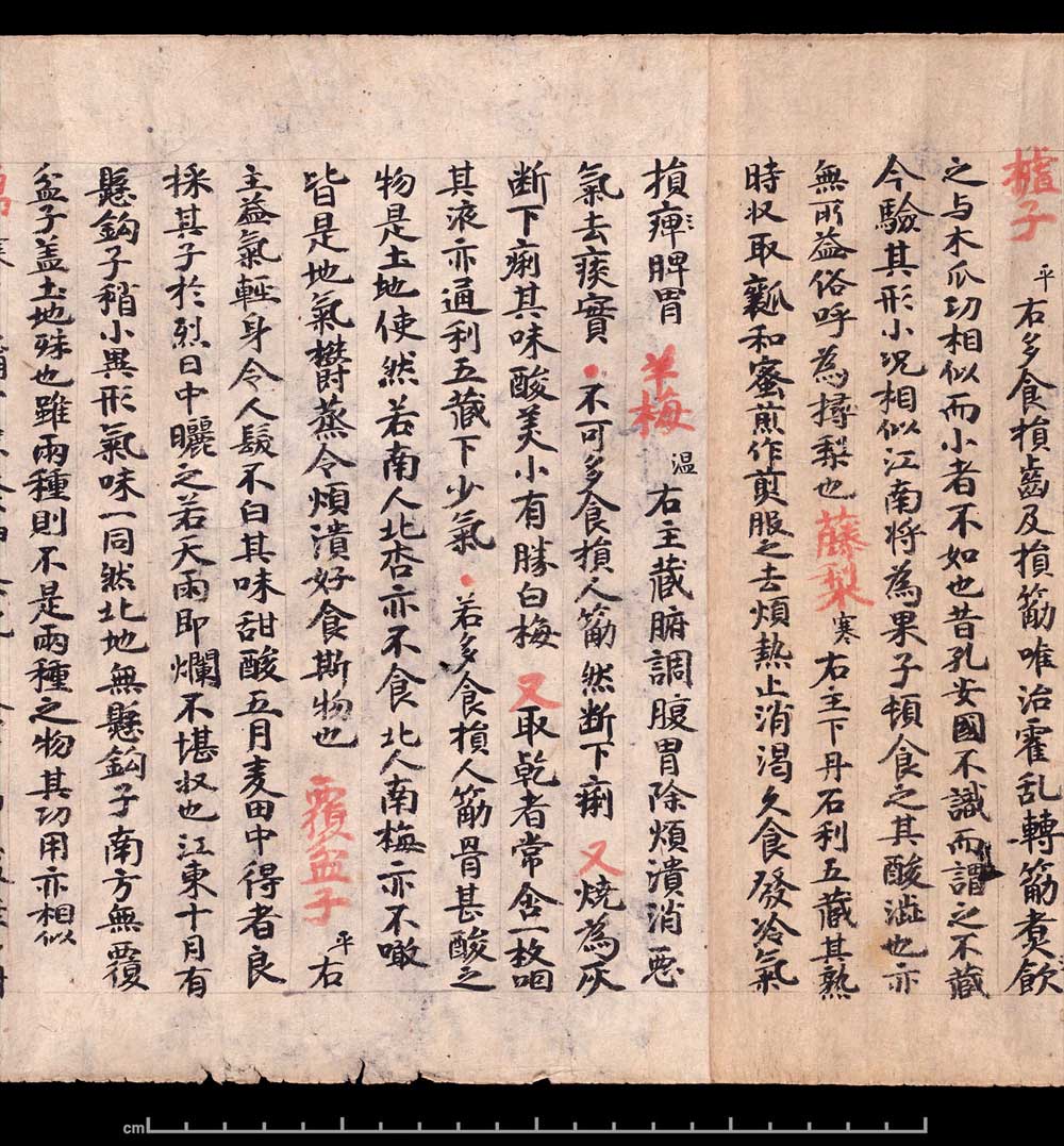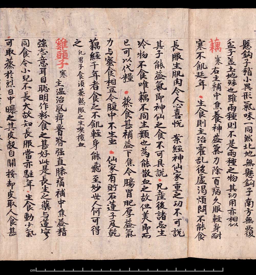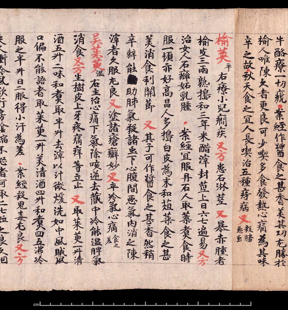 敦煌《食疗本草》残卷 纸本,卷轴。26.6x240cm,公元400-934。英国大英博物馆藏。