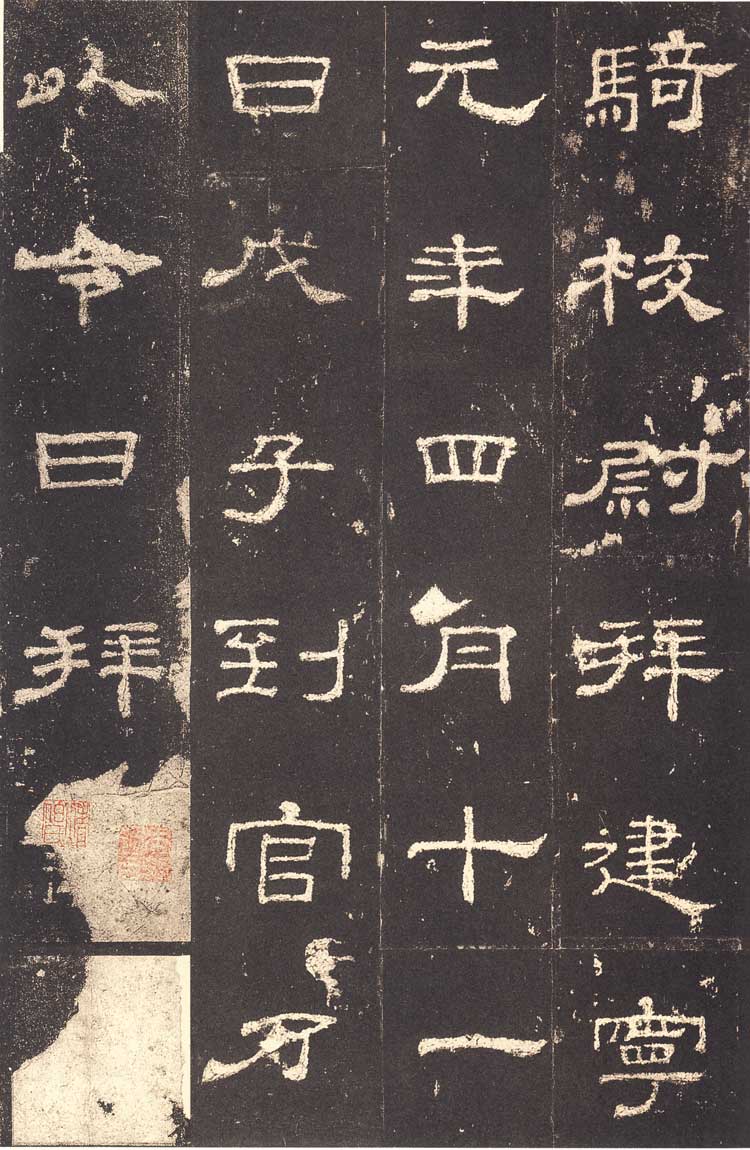 东汉隶书。此碑为并刻于一石的两碑。又称《史晨前、后碑》、《史晨前碑》、《史晨后碑》。东汉灵帝建宁二年(一六九年)立。隶书。前后是以碑之正刻、碑之阴刻而分。碑正刻全称《鲁相史晨祀孔子奏铭》,称《史晨前碑》,俗称《奏铭》。碑阴刻全称《鲁相史晨飨孔子庙碑》,称《史晨后碑》。前碑刻于东汉建宁二年(166年)三月。17行,行36字。后碑刻于建宁元年(165年)四月。14行,行36字。现存山东曲阜孔庙。内容为记载当时尊孔、祭孔活动事实。因补垣通沟工程,立市种梓事务,置守吏等乃次第进行,非一时之活动,故在《后碑》“史君飨”三字后至末字虽前后差大不同,但两碑笔致皆出自一人之手。此碑与《礼器》、《乙瑛》并称为孔庙三大名碑。清万经在《分隶偶存》书中品评此碑书法为“修饬紧密,矩度森然”,“其品格当在《卒史》(乙瑛碑)、《韩勅》(礼器碑)之右。”方朔评之谓“书法则肃括宏深,沈古遒厚,结构与意度皆备,洵为庙堂之品,八分正宗也。”碑文几及千字,气象和穆,笔意遒炼,笔法古朴厚实,为著名汉碑之一。康有为评此碑为虚和类,是在分隶书体汉碑中具有清秀俊雅风格,笔法至二、三分笔,折笔趋圆,柔和蕴润,为后世效法之楷则。此碑拓本甚多,仅明初至清中叶就不下百余本,可见称其为汉碑逸品之语焉不过。