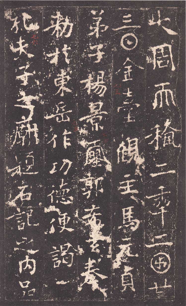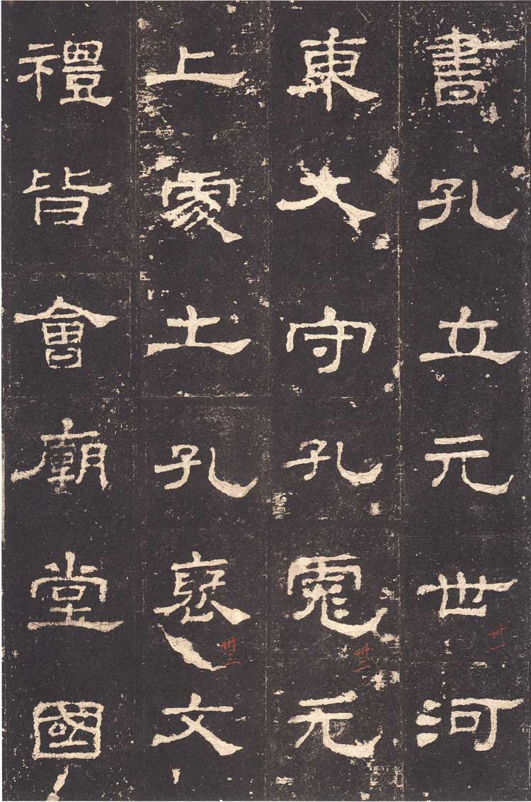 相河南史君讳晨字伯时,从越骑校尉拜,建宁元年四月十一日戊子到官,乃以令日拜谒孔子,望见阙观,式路虔跽,既至升堂,屏气拜手。祗肃屑僾,仿佛若在。依依旧宅,神之所安。春秋复礼,稽度玄灵;而无公出享献之荐,钦因春飨,导物嘉会,述修璧雍,社稯品制。即上尚书,参以符验。乃敢承祀,余胙赋赐。刊石勒铭,并列本奏。大汉延期,弥历亿万。时长史庐江舒李谦敬让,五官掾鲁孔畅,功曹史孔淮,户曹掾薛东门荣,史文阳马琮,守庙百石孔讃,副掾孔纲,故尚书孔立元世,河东大守孔彪元上,处土孔褒文礼,皆会庙堂,国县员冗,吏无大小,空府竭寺,咸俾来观。并畔官文学先生、执事诸弟子,合九百七人,雅歌吹笙,考之六律,八音克谐,荡邪反正,奉爵称寿,相乐终日。于穆肃雍,上下蒙福,长享利贞,与天无极。