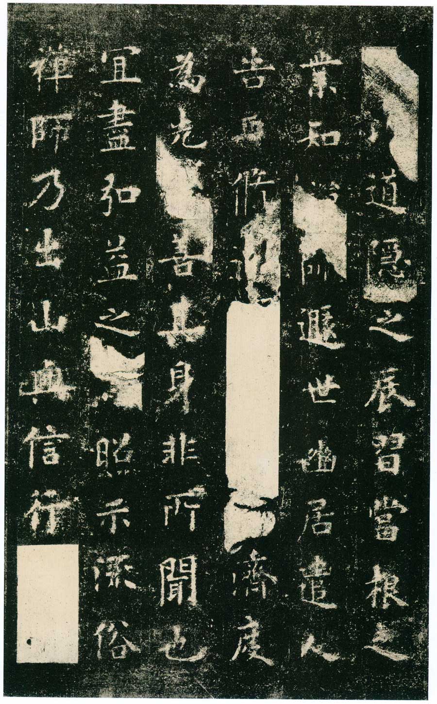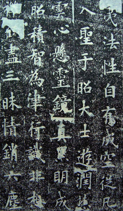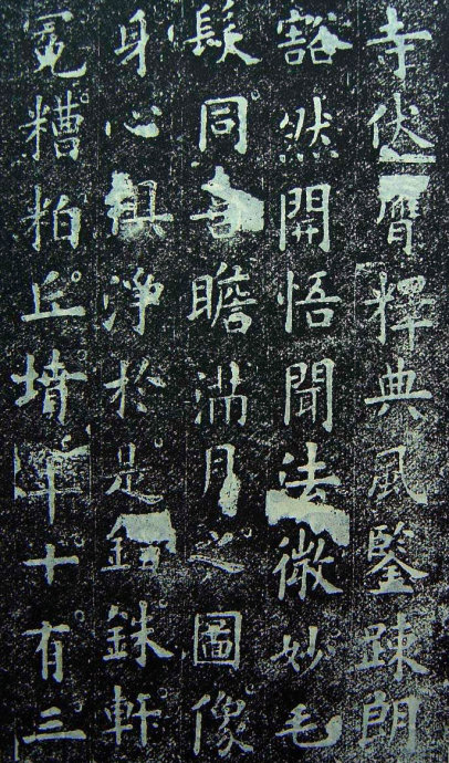 绵邈神理,希夷法性。自有成空,从凡入圣。於昭大士,游(阙二字)正,德润慈。心悬灵镜,(阙)蒙悟道,舍俗归真。累明成照,积智为津。行识非想,禅(阙三字)观尽三昧,情销六尘。结构穷岩,留连幽谷。灵应无像,神行匪速。敦彼开导,去兹(阙三字)绝有凭群生仰福,风火(阙)妄泡电同奔。达人忘已,真宅斯存。刹那(阙二字)净域(阙五字)乐永谢重昏。