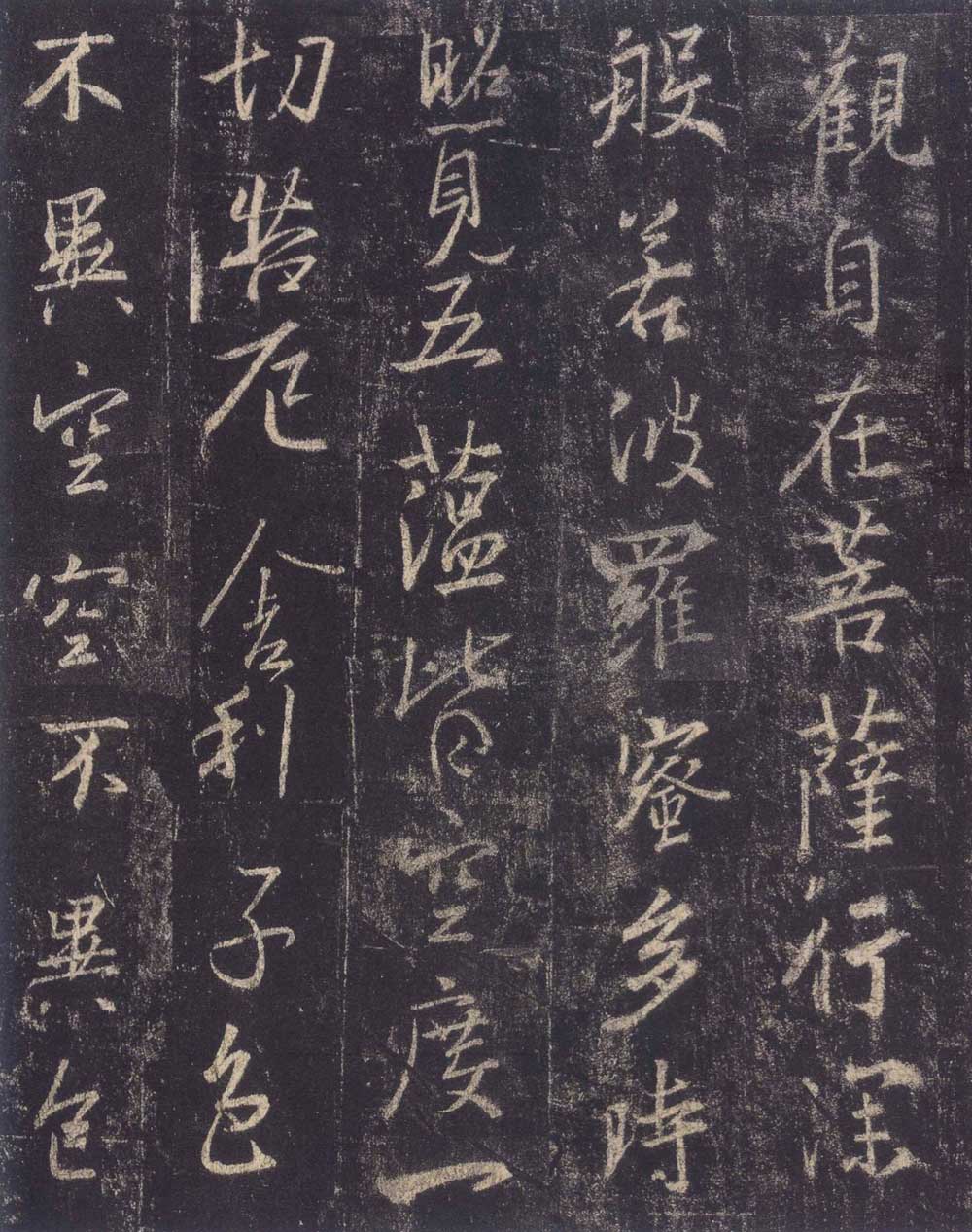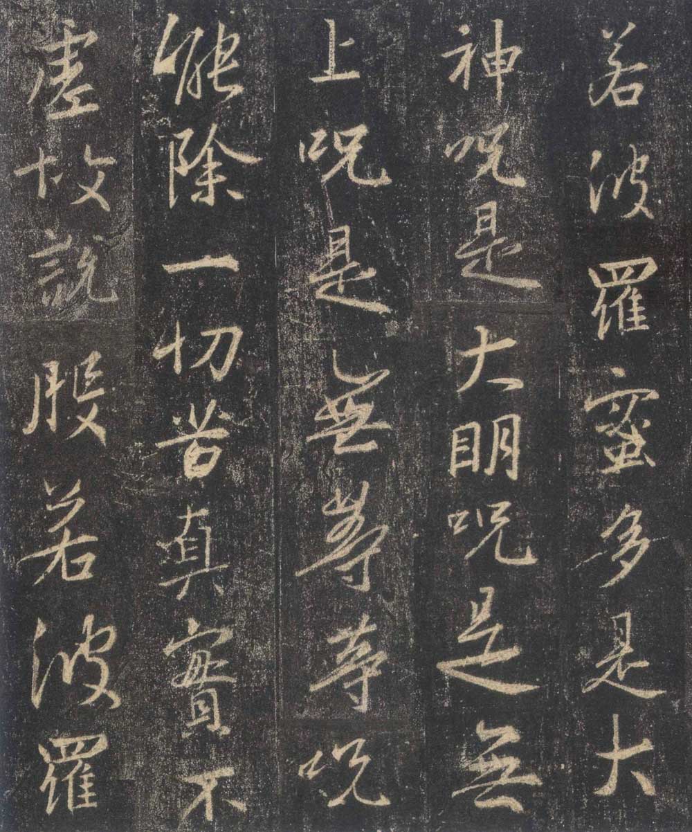 觀自在菩薩。行深般若波羅蜜多時。照見五蘊皆空。度一切苦厄。舍利子。色不異空。空不異色。色即是空。空即是色。受想行識亦復如是。舍利子。是諸法空相。不生不滅。不垢不淨不增不減。是故空中。無色。無受想行識。無眼耳鼻舌身意。無色聲香味觸法。無眼界。乃至無意識界。無無明。亦無無明盡。乃至無老死。亦無老死盡。無苦集滅道。無智亦無得。以無所得故。菩提薩埵。依般若波羅蜜多故。心無罣礙。無罣礙故。無有恐怖。遠離顛倒夢想。究竟涅槃。三世諸佛。依般若波羅蜜多故。得阿耨多羅三藐三菩提。故知般若波羅蜜多。是大神咒。是大明咒是無上咒。是無等等咒。能除一切苦。真實不虛故。說般若波羅蜜多咒即說咒曰