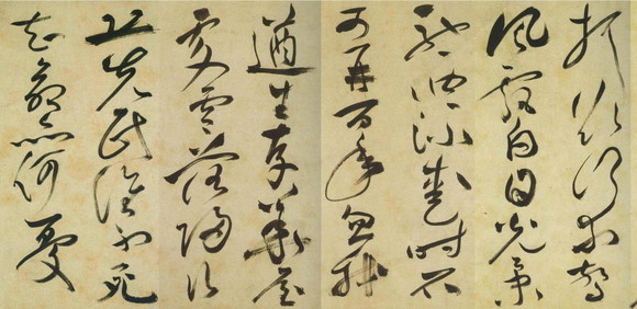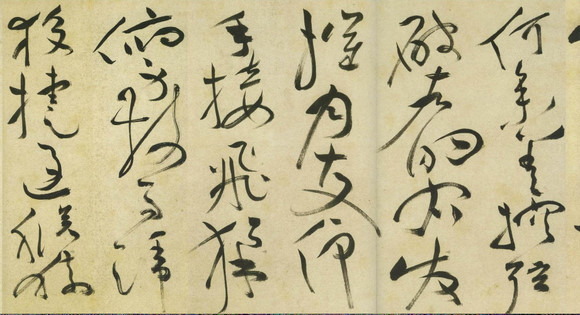 草书意多于法,特别是大草,纵情奔放,气势开张,酣畅淋漓,而其章法布局打破了纵横有列的格局,于参差错落,开合锁结,过接映带,揖让环抱中流露出一种强烈而震撼人心的韵律和节奏,但放逸不是不要规矩,而是一种超越于法度之外的过人胆识,这种胆识是建立在圆熟的技巧和深厚的功力之上的,当其升华到一个自由王国的境界时,便会在创作的激情中达到心手两忘,随机生发,笔态横生,点画狼藉『当其下手风雨快,笔所未到气已吞』。从而达到一个抒情写意的境地,一个『寄妙理于豪放之内』的境地,一个『从心所欲不逾矩』的境地。纵观历史上能达到这种境地的草书大家除二王、旭素和宋之黄庭坚外,明代又将草书推上了一个新的高峰。明代由于手工业的发达,制纸工艺日臻完美,加上厅堂式的建筑,书法的幅式开始由手卷尺牍小品向中堂巨幛大幅发展,而大幅的作品要有雄浑的笔力、挥斥八极的气势和形式对比强烈的章法布局为依托,这种创作观念构成了明人尚势的时代特色,而行草书体正好适合了这种变化的需要,马宗霍《书林藻鉴》谓:『明人类能行草,虽绝不知名者,亦有可观。』明代善草书的书家甚多,著名的有陈璧、张弼、文徵明、文彭、王宠、陈道复、莫云卿、董其昌、陈继儒、黄道周、张瑞图、倪元璐、傅山、王铎等,他们各人在这宽广的领域里驰骋并形成了不同的风格,其中最负盛名的当首推祝允明了。