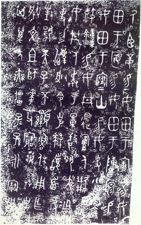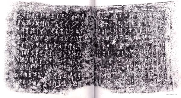 大克鼎为西周孝王时期器物。1890年陕西省扶风县出土,同时出土的还有鼎、钟等器,都属于一个名叫克的贵族。此鼎形体巨大,高93.1厘米,重201.5公斤。口沿饰兽面纹,腹部饰流畅的波曲纹。腹内壁有铭文二百九十字,铭文字体工整,笔势圆润,堪称西周中晚期青铜器铭文的典范。洋洋洒洒,无论在布局书写上、还是铸造效果上都十分精美,字体大小统一不失灵动,圆润古拙不失劲健,呈出一种舒展,端雅的风尚。