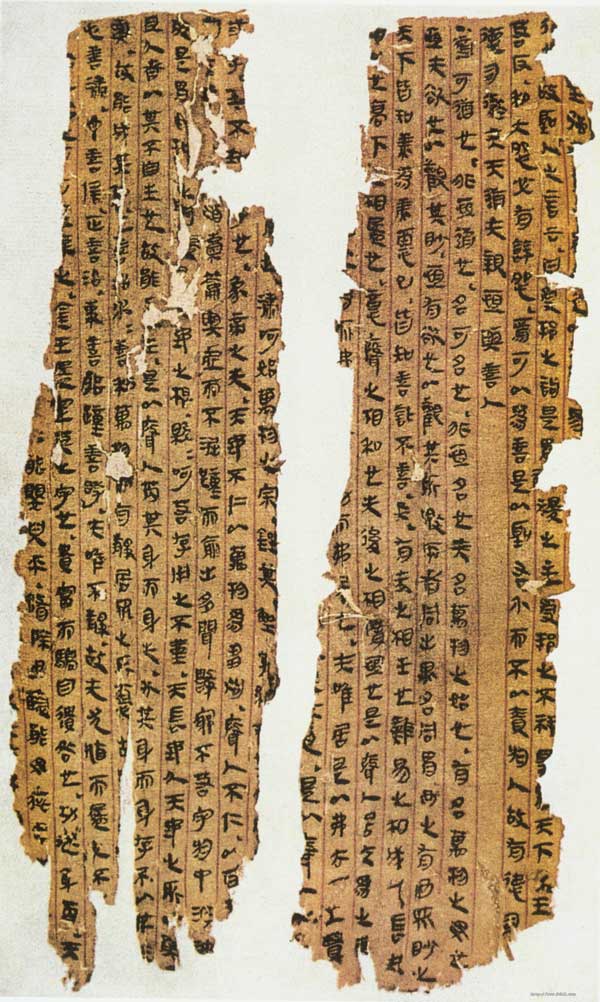 1973年在湖南长沙马王堆三号汉墓出土。包括《战国策纵横家书》、《老子》甲本和乙本等,它是研究西汉书法的第一手资料,使前人争论不休的西汉有无隶书的问题迎刃而解,所谓西汉无隶书,西汉无分书等说法不攻自破。