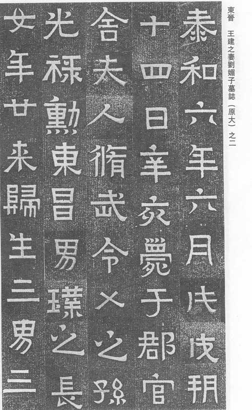 1998年9~12月,南京市博物馆在该市北郊的象山发掘了3座东晋琅琊王氏家族墓葬,发掘简报刊载《文物》2002年第7期,并且披露了4方墓志的拓片。其中编为9号的夫妻合葬墓保存完好,从中出土了3方墓志,有2方为石质墓志,发现于墓室内死者头部,一为王建之墓志,一为王建之妻刘媚子墓志;另一方为砖质墓志,发现于墓坑填土中,亦为刘媚子墓志,其基本内容与石志相同而文字稍简略,估计是“为了日后合葬时便于寻找而有意设置的”。王建之其人于史无徵,据其墓志云:“晋故振威将军、鄱刚太守、都亭侯,琅耶临沂县都乡南仁里王建之,字荣妣,故散骑常侍、特进、卫将军、尚书左仆射、都亭肃侯彬之孙,故给事黄门侍郎、都亭侯彭之之长子。”可知建之为王彬的孙子,袭封都亭侯。王建之的妻子刘媚子亦不见于史传。