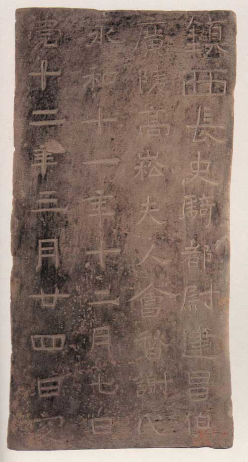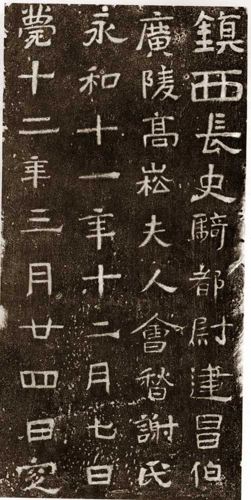 镇西长史骑都尉,建昌伯广陵高崧夫人会稽谢氏,永和十一年十二月七日薨,十二年三月廿四日窆。 (《南京出土六朝墓志》)