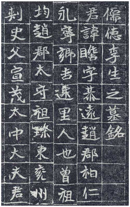 北魏《李瞻墓志》,《李瞻墓志》全称《儒德李生之墓铭》刻于北魏正始五年(五零八)正月,墓志为覆斗形状,石高三十六点五厘米,宽四十三厘米,字面高二十九厘米,宽三十六点五厘米,正书十六行,行十五字,有棋盘格,二零零零年出土于河北赞皇。