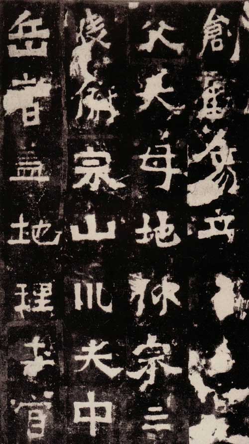 《中岳嵩高灵庙碑》虽放纵,但风格极高浑雄大,笔力沉静,具有一种森严之妙趣。此碑与《大代华岳庙碑》文字大致相同,仅将中间有关嵩华词句,互相掉换。