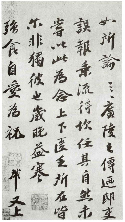 肇奉别。行复岁暮。倾乡实倍常情。但公私纷纷。为问不数。甚自愧也。别纸丁宁。岂惟益友忠告之谊。亦出于忧国恳恳之诚。反复数四。不胜感叹。衰拙于此。岂能恝然。但再三则渎。终恐无补尔。余非会面。不究所怀。远书万一流落。不可不虑也。海陵过此相见。诚如所谕。广陵之传,乃邸吏误报。乘流得坎。任其自然。未尝以此为念。上下匮乏。所在皆尔。非独彼也。岁晚益寒。强食自爱为祝。肇又上。