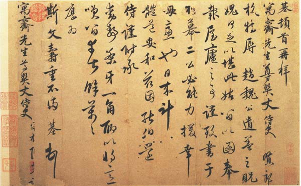 此帖为信札,落笔不苟,颇有韵味,从中可以看出元代诸家赵孟頫、康里子山等人的影响。曾藏清内府,刻入《三希堂法帖》。