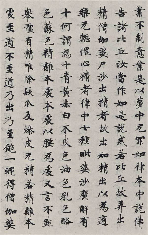 作品欣赏:小楷善见律(选页) 乌丝栏纸本 275行 行17字 纵22.6厘米 横468.8厘米 故宫博物院藏