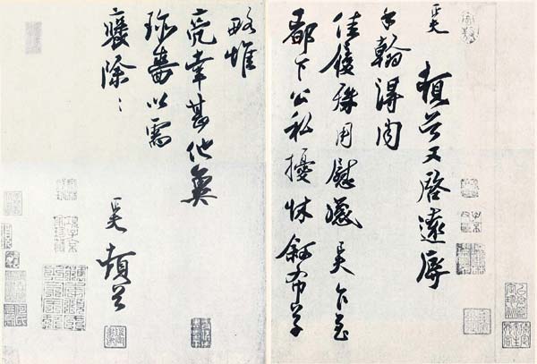 正夫顿首又启 远辱手翰 得闻佳履 殊用慰感 正夫乍至都下 公私扰怵 叙布草略 惟亮幸甚 他冀珍啬 以需褒除褒除 正夫顿首