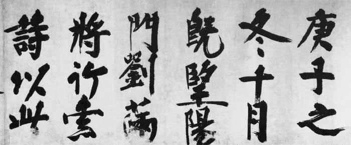 耶律楚材少年时受金代文化影响至深,在赵孟頫扭转金及南宋末午书法流风之前,他的书法具有一定的代表性。《元史》本传称其:“善书,晚年所作字画尤劲健,如铸铁所成,刚毅之气,至老不衰。”他的书法继承了唐宋颜真卿,黄庭坚书风,雄放刚健、硬拙挺拔,以端严刚劲著称,有“河朔伟气”,与后来赵孟頫提倡的晋人韵味迥异。明人宋濂说:“耶律文正晚年所作字画尤劲健,如铸铁所成,刚毅之气,至老不衰。”