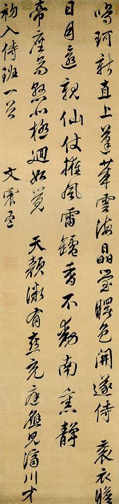 行书初入侍班诗轴 绫本 纵214厘米 横51.4厘米 上海博物馆藏